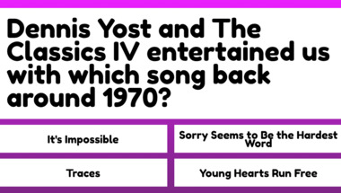 In this fun trivia quiz we're going to ask questions like "The Carpenters entertained us with which song back around 1975?" and "The Kinks entertained us with which song back around 1971?".