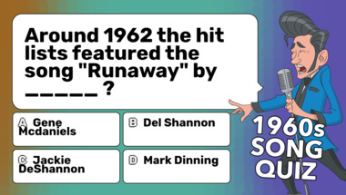 6/10 is the score to beat in this trivia quiz to put yourself over the average quiz taker. But you're probably going to be able to answer questions "Around 1962 the hit lists featured the song "Runaway" by _____ ?" and "Around 1964 the hit lists featured the song "Tie Me Kangaroo Down Sport" by _____ ?" easy!