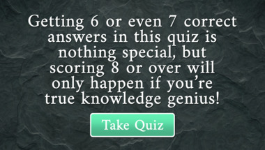If you can answer "Which pair of animal species and type is correct?" and maybe even "One of the ingredients necessary for porcelain, Petuntse, is found only in which coun.." there is a good chance that you're going to beat the average score of 6/10 in this General Trivia quiz