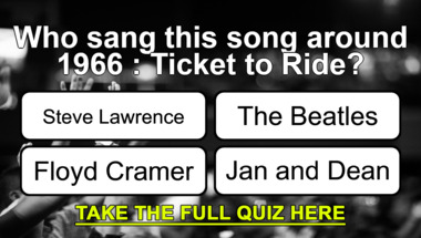 6/10 is what people on average are scoring in this trivia quiz so far. Are you ready to answer questions like "Who sang this song around 1968 : "All You Need Is Love"?" and "Who sang this song around 1966 : "Ticket to Ride"?"