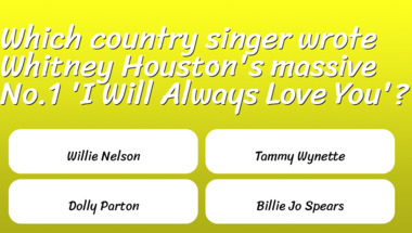 Look forward to questions like ""Ain't no sunshine when she's gone, And she's always gone too long" said which artist.." and "How are Jolene's locks of auburn hair described in the song by Dolly Parton?"