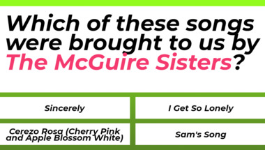 In this fun trivia quiz we're going to ask questions like "Which of these songs were brought to us by "Pat Boone"?" and "Which of these songs were brought to us by "Dean Martin"?".