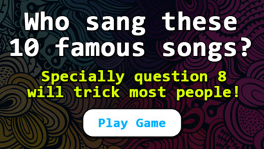 6/10 is what people on average are scoring in this Songs quiz so far. Are you ready to answer questions like "Who sang this song : "Surfin' U.S.A." (Popular in 1964)?" and "Who sang this song : "Smoke Gets in Your Eyes" (Popular in 1960)?"