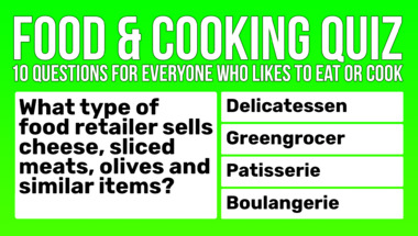 If you can answer "What is the name for the French finger of choux pastry, filled with cream?" and maybe even "What type of food retailer sells cheese, sliced meats, olives and similar items?" there is a good chance that you're going to beat the average score of 6/10 in this trivia quiz