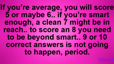 If you can answer "What color is feta cheese?" and maybe even "Which of these European countries have not been at war since 1814?" there is a good chance that you're going to beat the average score of 6/10 in this trivia quiz