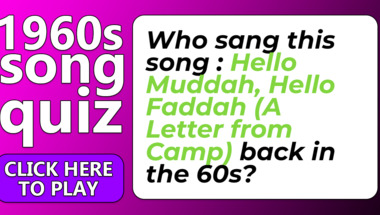 If you can answer "Who sang this song : "Sherry" back in the 60s?" and maybe even "Who sang this song : "Hello Muddah, Hello Faddah (A Letter from Camp)" back in the 60.." there is a good chance that you're going to beat the average score of 4/10 in this 1960s Songs quiz
