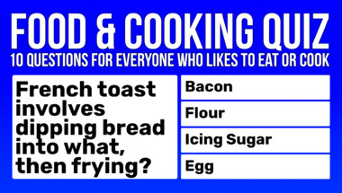 In this fun trivia quiz we're going to ask questions like "What T is a name for a special coating to make pans nonstick?" and "French toast involves dipping bread into what, then frying?".